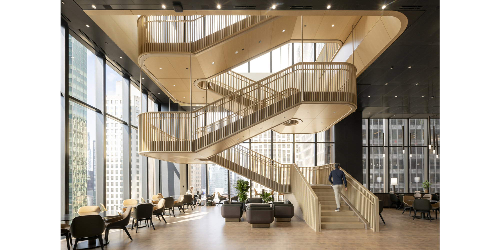 The eight expansive trading floors, strategically located above, allow for better team integration and improved functionality for trading operations. At the center of the tower, the triple-height ‘Exchange’ acts as a community hub with sixteen different venues as well as spaces for town hall meetings and other large gatherings, while the top of house features an executive and client facility. The building also features a state-of-the-art health and wellness center and a curated art program – including works of art by Maya Lin, Leo Villareal, Gerhard Richter, Refik Anadol, and Norman Foster.