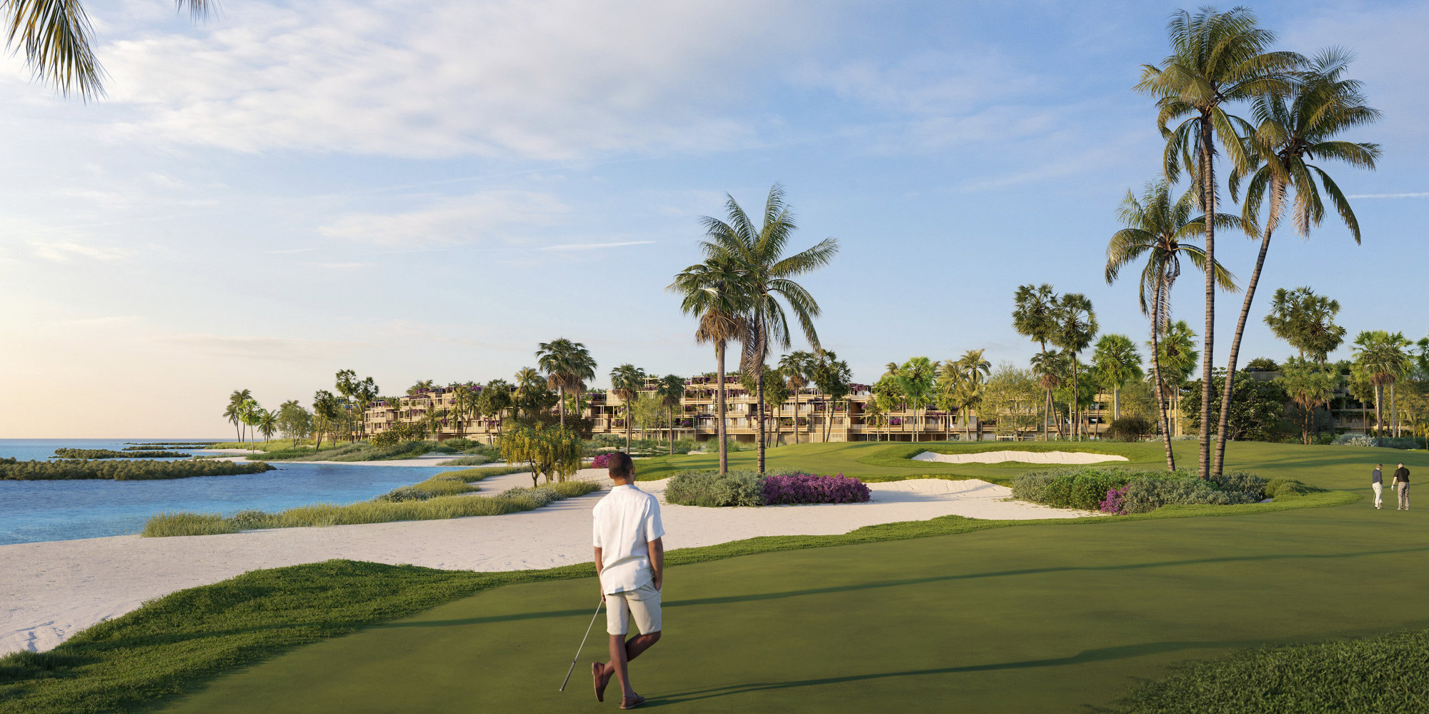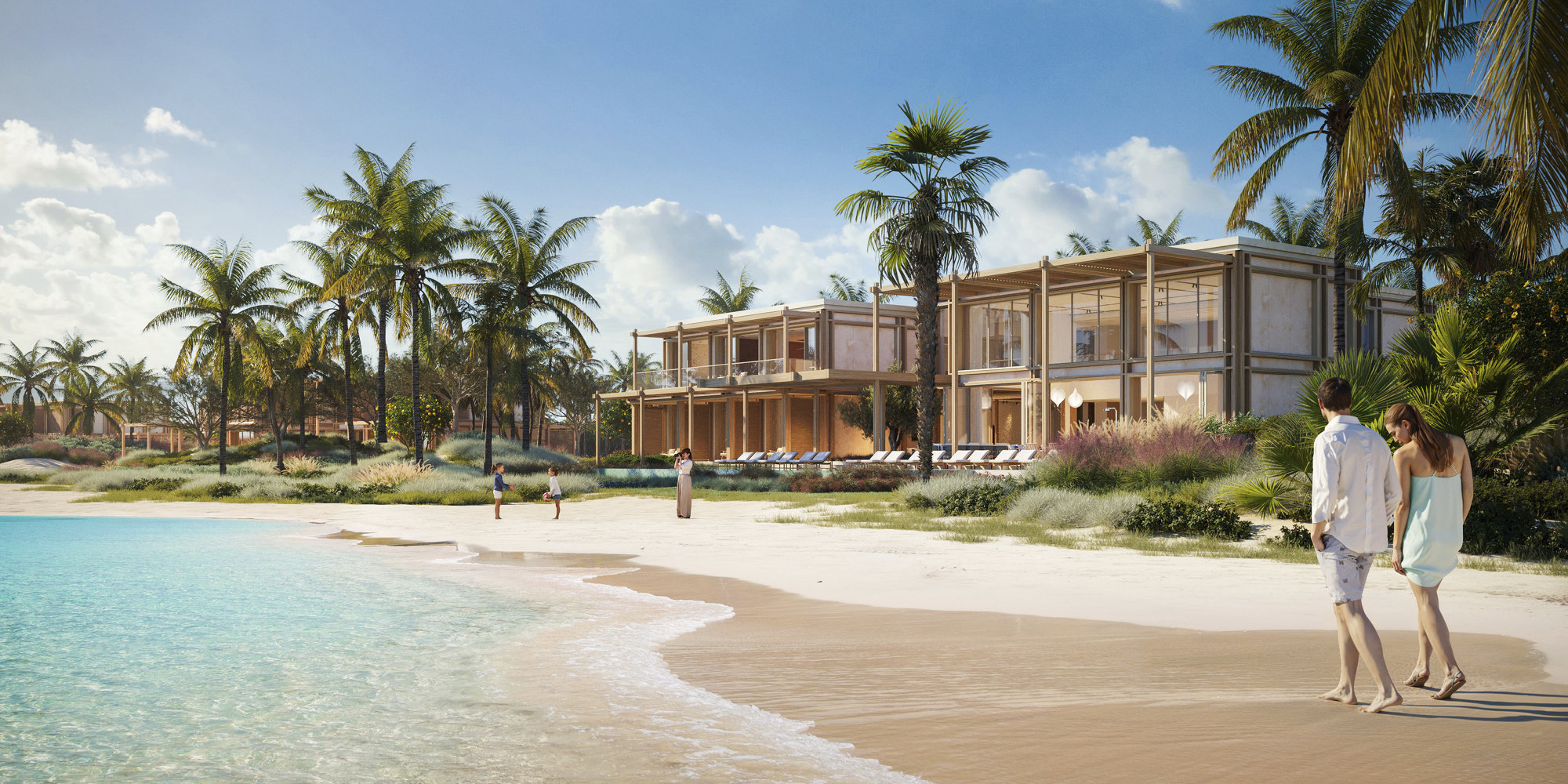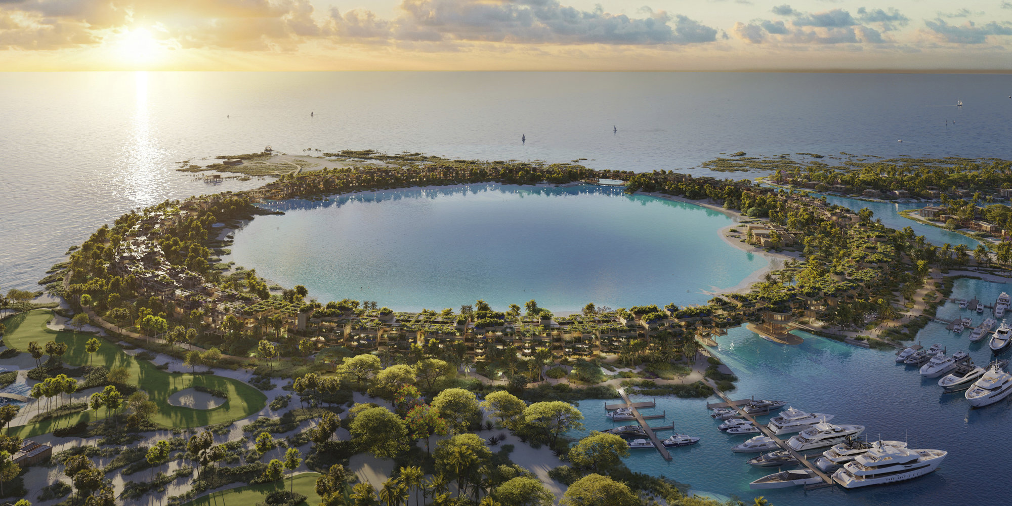 There are more than 740 new residences on the island, which are supported by state-of-the-art amenities, including a 115-berth marina, beach club, sailing and watersports schools, a racket club, fitness centre, and an 18-hole golf course and a clubhouse. ‘The Ring’ contains luxury apartments, two hotels, and a vibrant souk. Its lightweight timber structure is elevated above the water and incorporates greenery, pergolas, and shaded canopies to enhance wellbeing. Other residential communities are located to the south, centre, and north of the masterplan, featuring large luxury villas at the water’s edge.