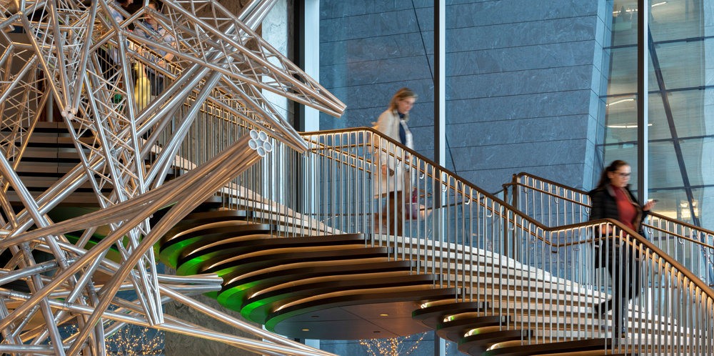 The studio has access to Hearst Tower’s amenities, including a gym, sauna, canteen and communal lobby atrium that fills the shell of the old structure at the base of the building. Members of the team often spend time in Central Park – taking walks, going running and attending concerts during the warmer months.