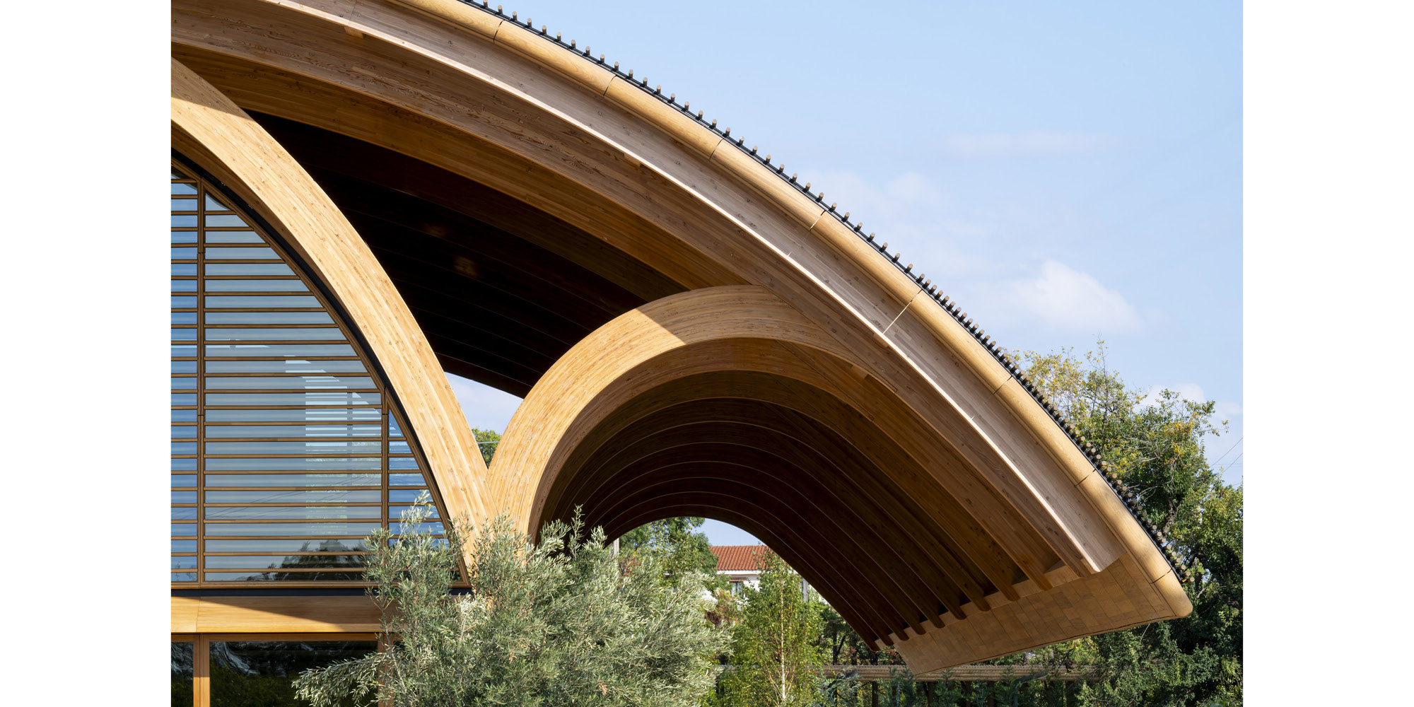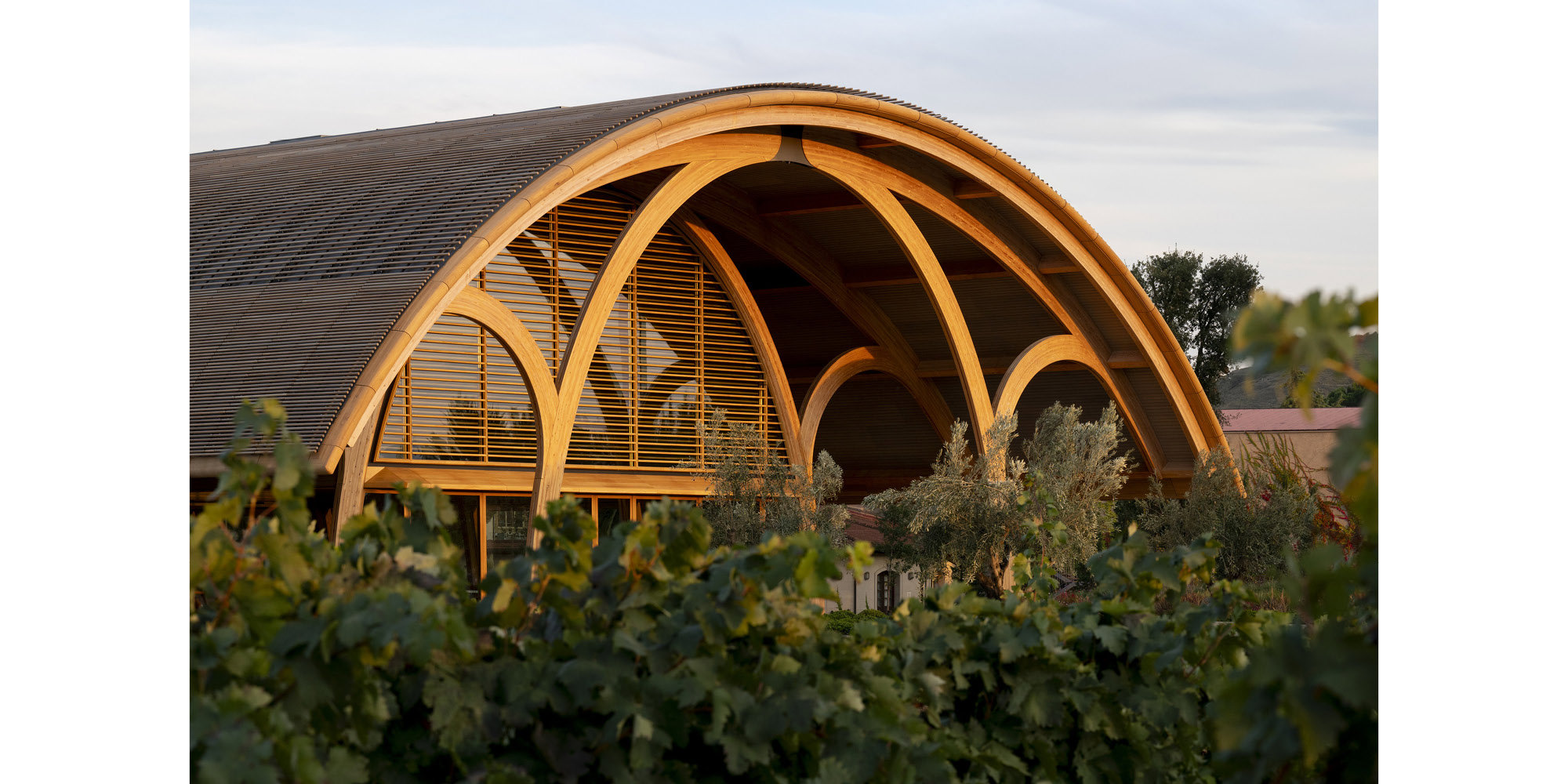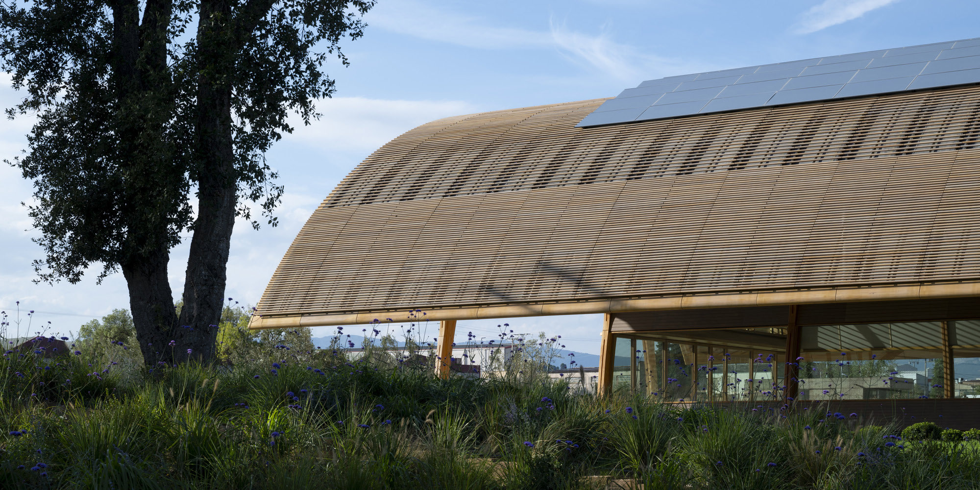 The new visitor centre is designated as a ‘Planet 1.0’ building – as its carbon emissions can easily be absorbed by the Earth’s green cover – making it a true sustainable exemplar. The building also adopts an Energy Plus strategy led by the photovoltaic panels on the roof that produce more energy than required for building operations. The excess energy is diverted to the existing winery buildings. The building features large overhangs on all four sides to reduce heat gain from the sun while blurring the boundaries between inside and outside. A central skylight and carefully integrated glazed facades bring natural light into the interior spaces, reducing the need for artificial lighting. Natural building materials contribute to a biophilic environment and enhance wellbeing for visitors and employees. The new landscape features local species that enhance biodiversity and a discreet change in topography that is designed to protect the winery from the increasingly frequent heavy rainfall.