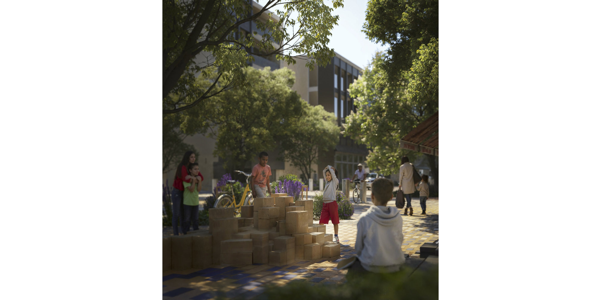 Community routes provide an additional layer of resilience, linking the neighbourhood centres where social amenities and plazas are located. Finally, pocket gardens, plazas, and parks are introduced and connected by pathways, ensuring residents have easy access to green and open spaces.