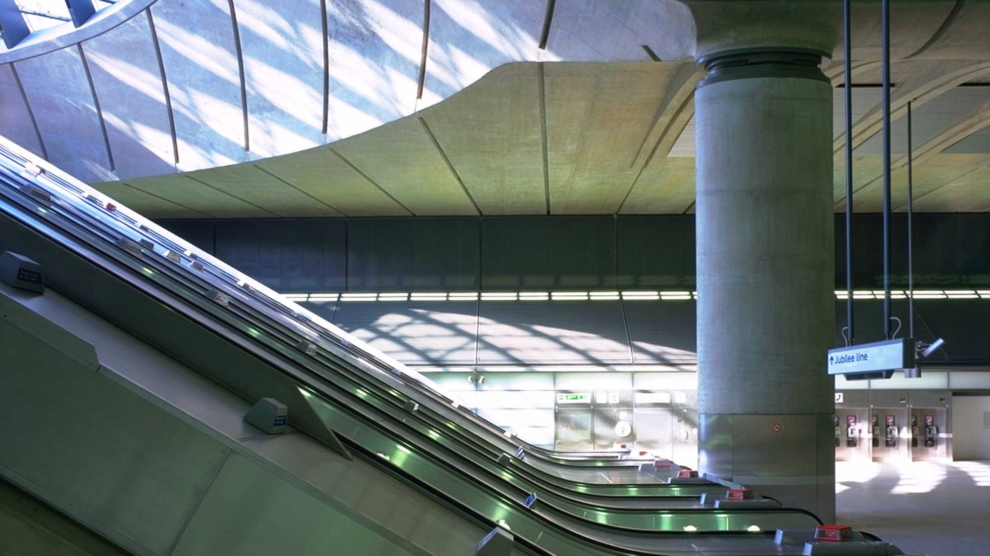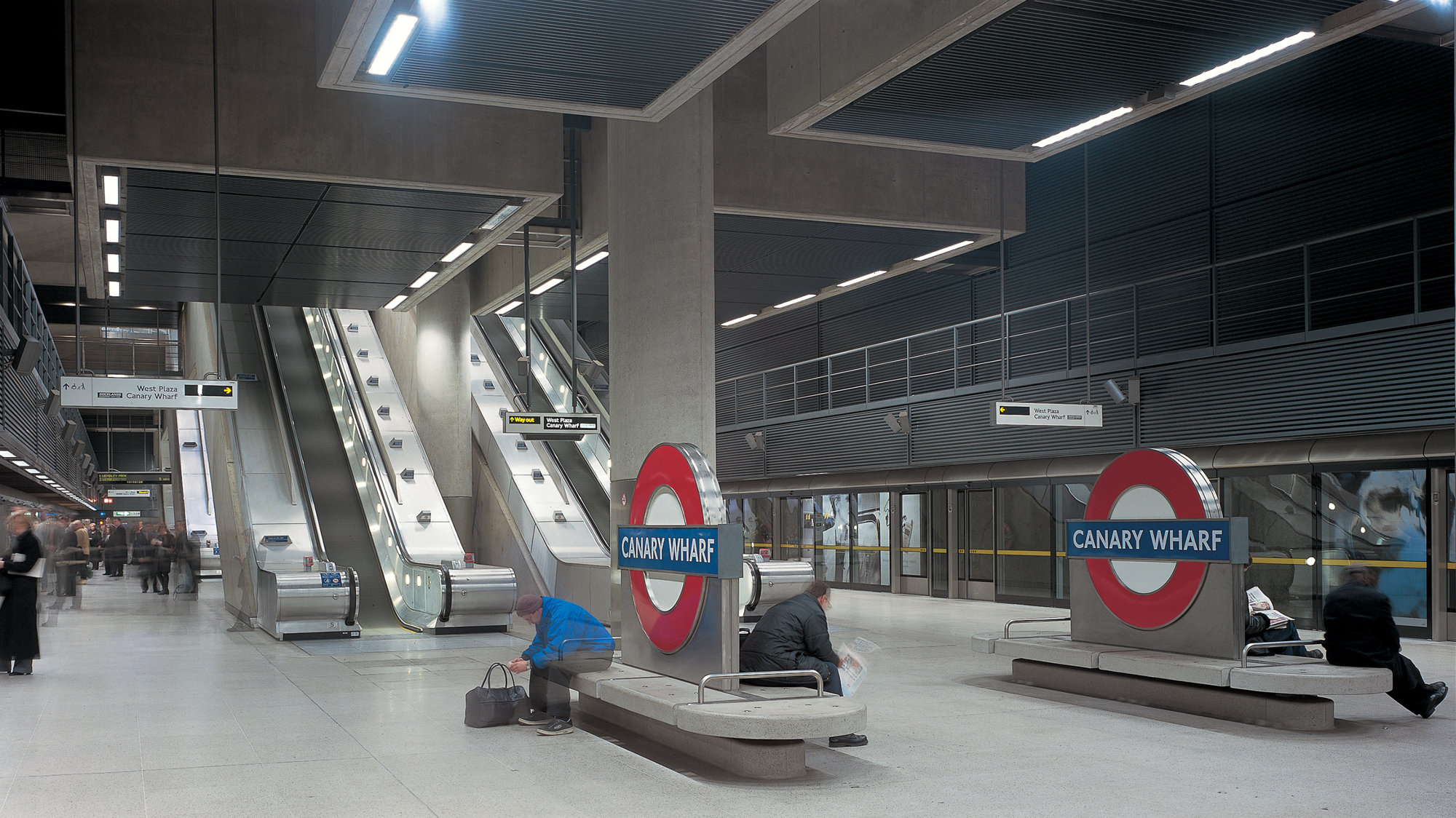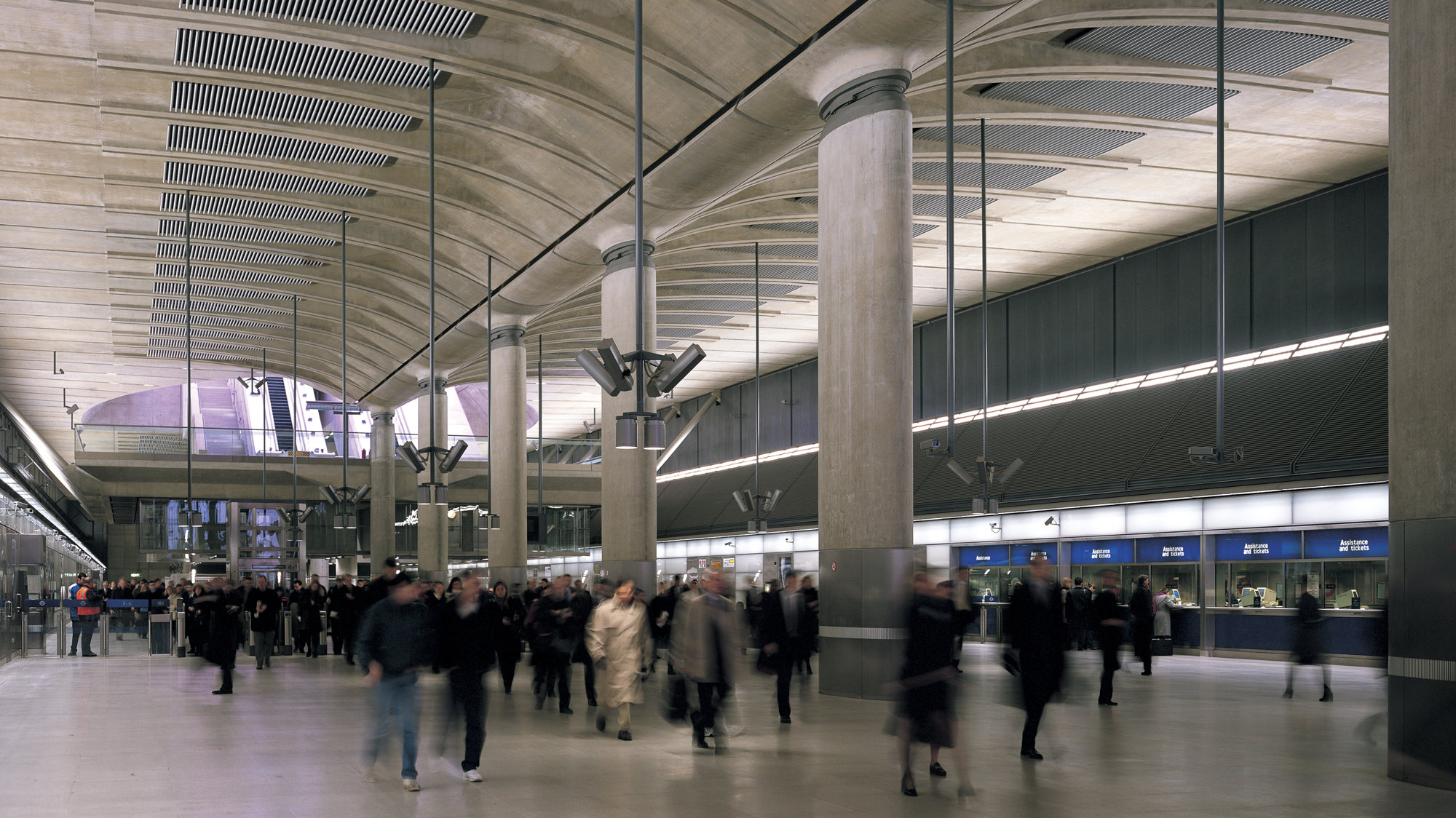 The Jubilee Line extension is one of the greatest acts of British architectural patronage of recent years, comprising eleven new stations by as many architects. Canary Wharf Station is by far the largest − when the development of the area is complete, it will be used by more people at peak times than Oxford Circus, currently London's busiest Underground destination.