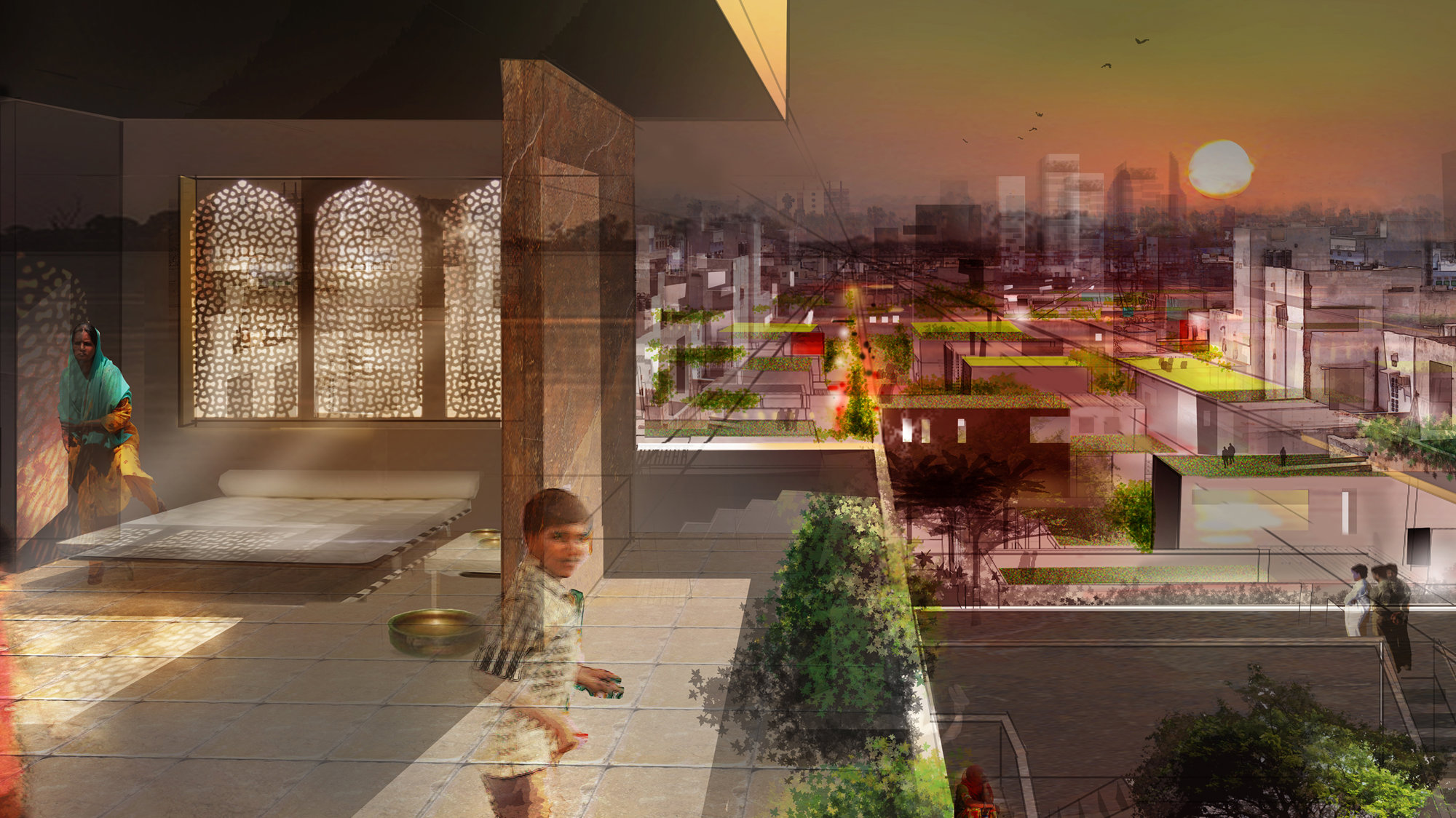 The study found four main types of dwelling, two of which were combined with light industrial units or small commercial premises – the residents of Dharavi recycle 80 percent of Mumbai’s waste. This mixed-use character will be preserved, with double-height spaces that create an intricate vertical landscape and reflect the community’s way of life. The proposal would give all families that have been living in the area for a period of time 225 square foot of space – a major improvement on current housing standards. This will be of high construction quality, with one toilet per unit, running water, drains, recycling infrastructure and land tenure security for every resident. Sensitively layering old and new, the project includes a series of taller residential buildings for sale, which occupy a small footprint and are planned to fund the community’s infrastructure improvements. Development would also be phased to eliminate the need for transit camps – instead, the project itself would catalyse the rehabilitation of Dharavi from within.