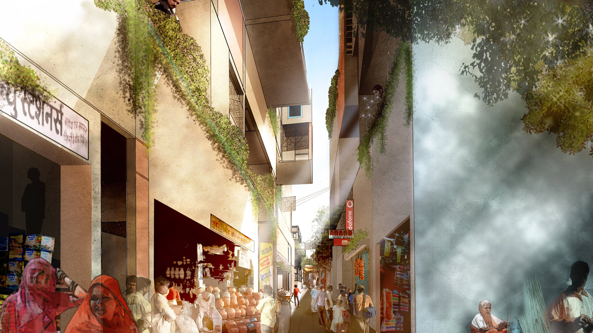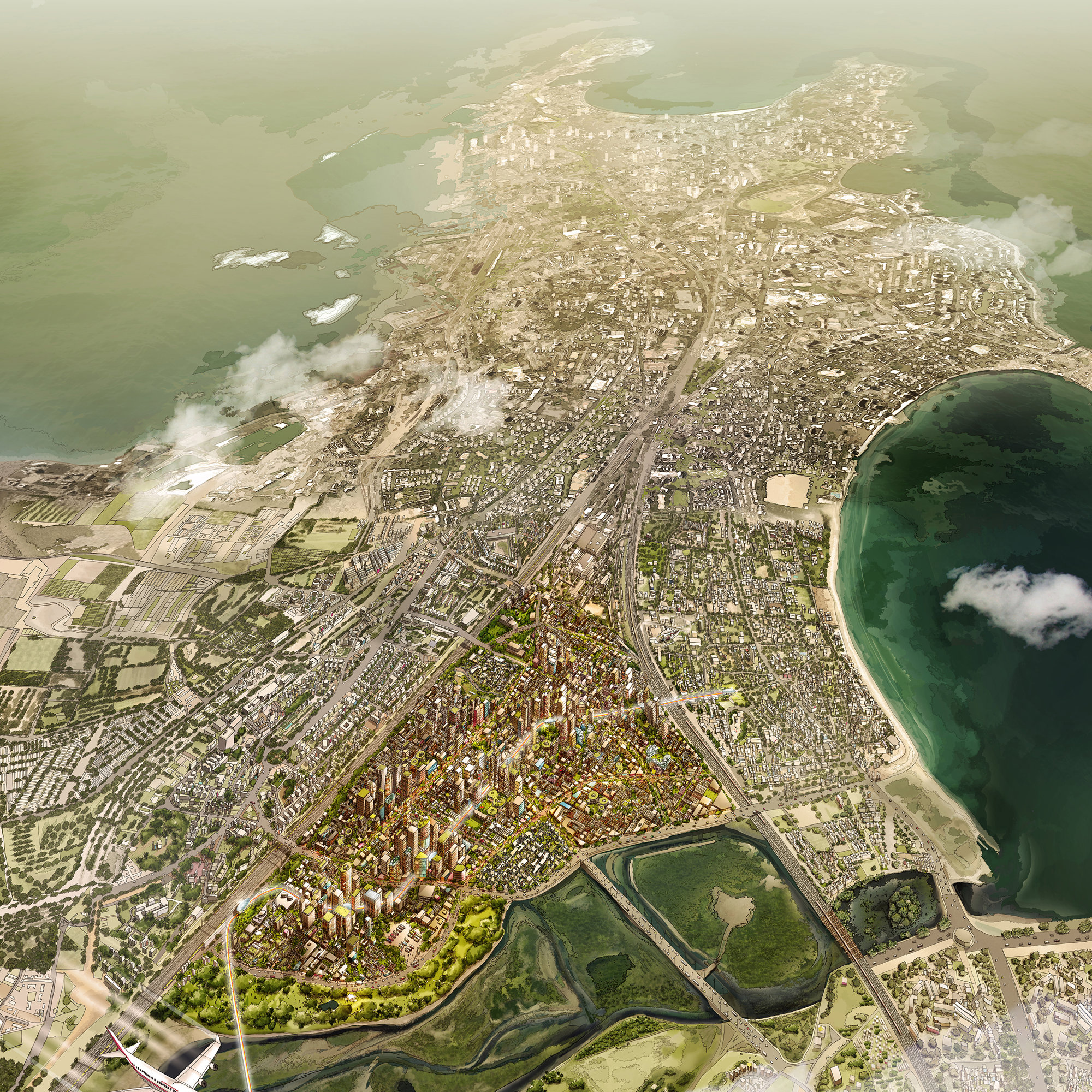 The strategy meets the basic need for proper sanitation and deals effectively with the problem of flooding, and includes provision for new community facilities, schools, hospitals and parks. Historically, there has been a tendency to build low-rise and occupy most of the available land, thus the streets are defined as the space not occupied by houses, often reduced to the absolute minimum width possible for access. The proposal supplements the dense, detailed sections of the grid with wider access roads – the previously impermeable city-within-a-city will be opened up with new public transport links and clear pedestrian routes. A diagonal street pattern allows prevailing winds to permeate the urban fabric and helps to cool the buildings and public spaces.