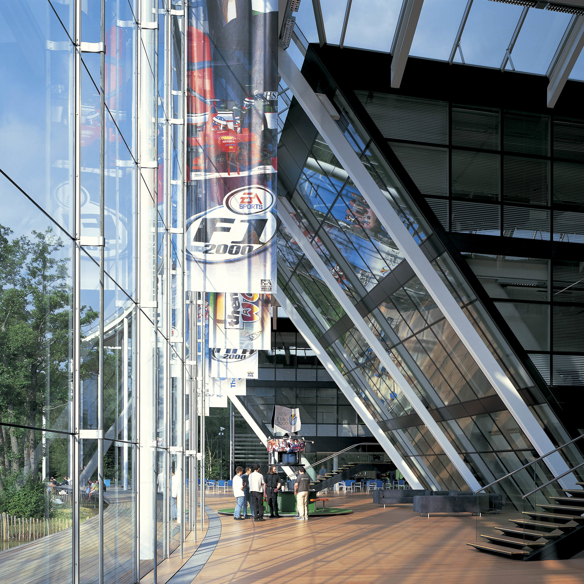 Through the design of a number of company headquarters and office buildings, beginning with Reliance Controls in 1966, the practice has consistently encouraged companies to adopt flexible, non-hierarchical working environments. In the design of its European Headquarters, the leading computer-game software development company Electronic Arts wholly embraced this philosophy. The headquarters sets new standards in this fast-moving industry, providing high-quality workspace, a state-of-the-art media centre for presentations, and an extensive range of on-site facilities.