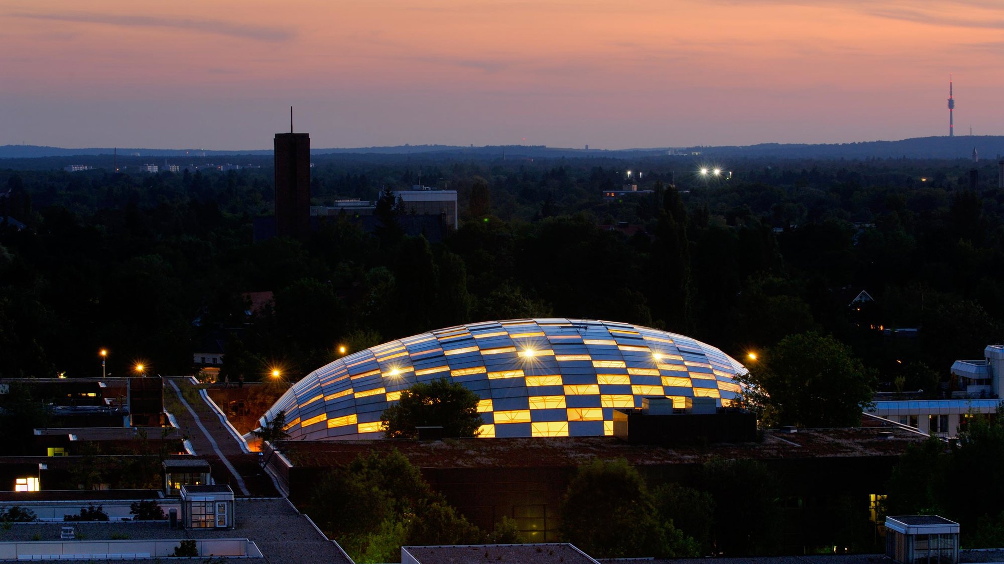 The University’s mat-like campus was designed by Candilis Josic Woods Schiedhelm and was hailed as a milestone in university design when the first phase was completed in 1973. The facade was designed by Jean Prouvé, following Le Corbusier’s ‘Modulor’ proportional system. It was fabricated from Corten steel, which has self-protecting corrosive characteristics. The rusty appearance of these buildings led to the nickname of ‘die Rostlaube’ − the ‘rust-bucket’. However, in the slender sections used by Prouvé the steel was prone to decay, which by the late 1990s had become extensive. As part of a comprehensive process of renewal the old cladding has been replaced with a new system detailed in bronze, which as it patinates over time emulates the colour tones of the original.