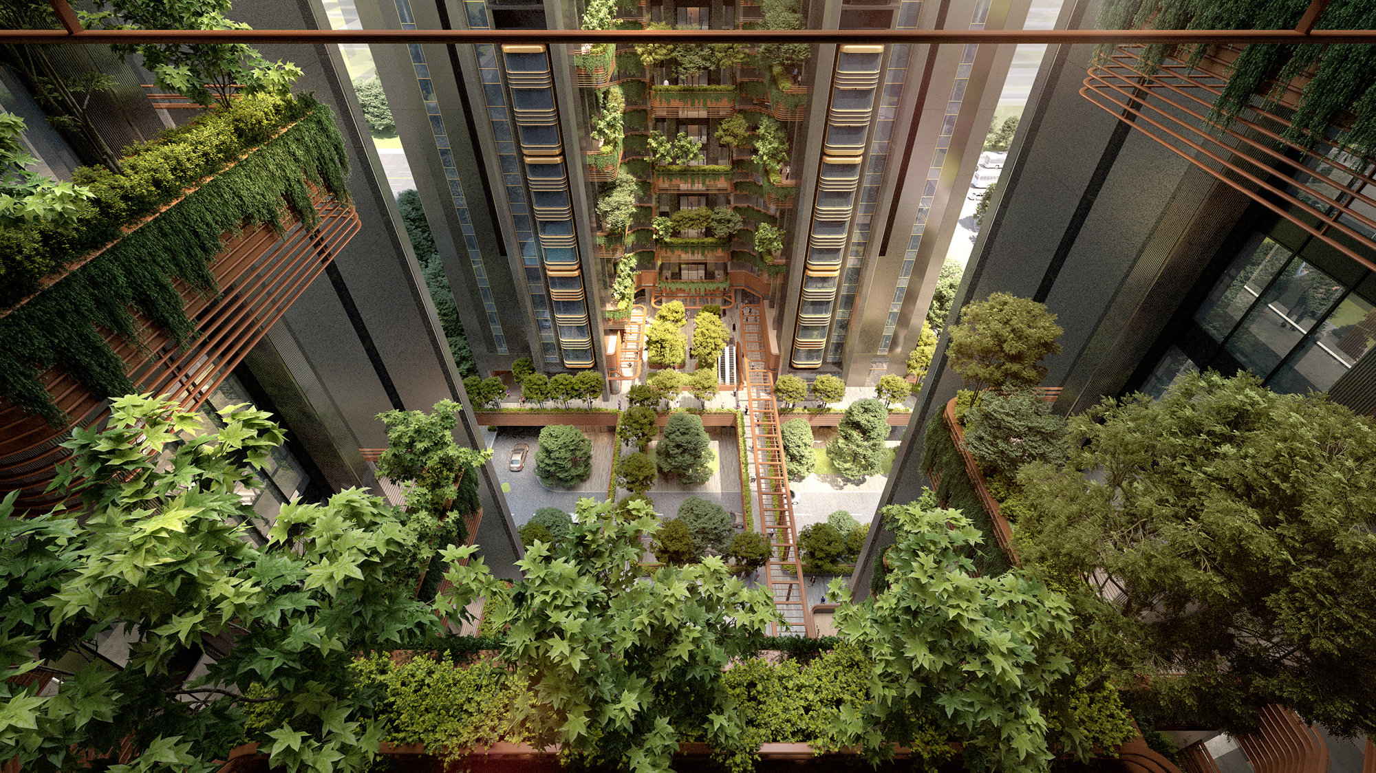 The towers’ sky gardens are a shared space for all residents. They offer spectacular views across the city and facilitate a wide range of activities, such as exercise classes and curated events. Each sky garden is a triple height space with louver shading and planting, offering a more private and exclusive atmosphere.
