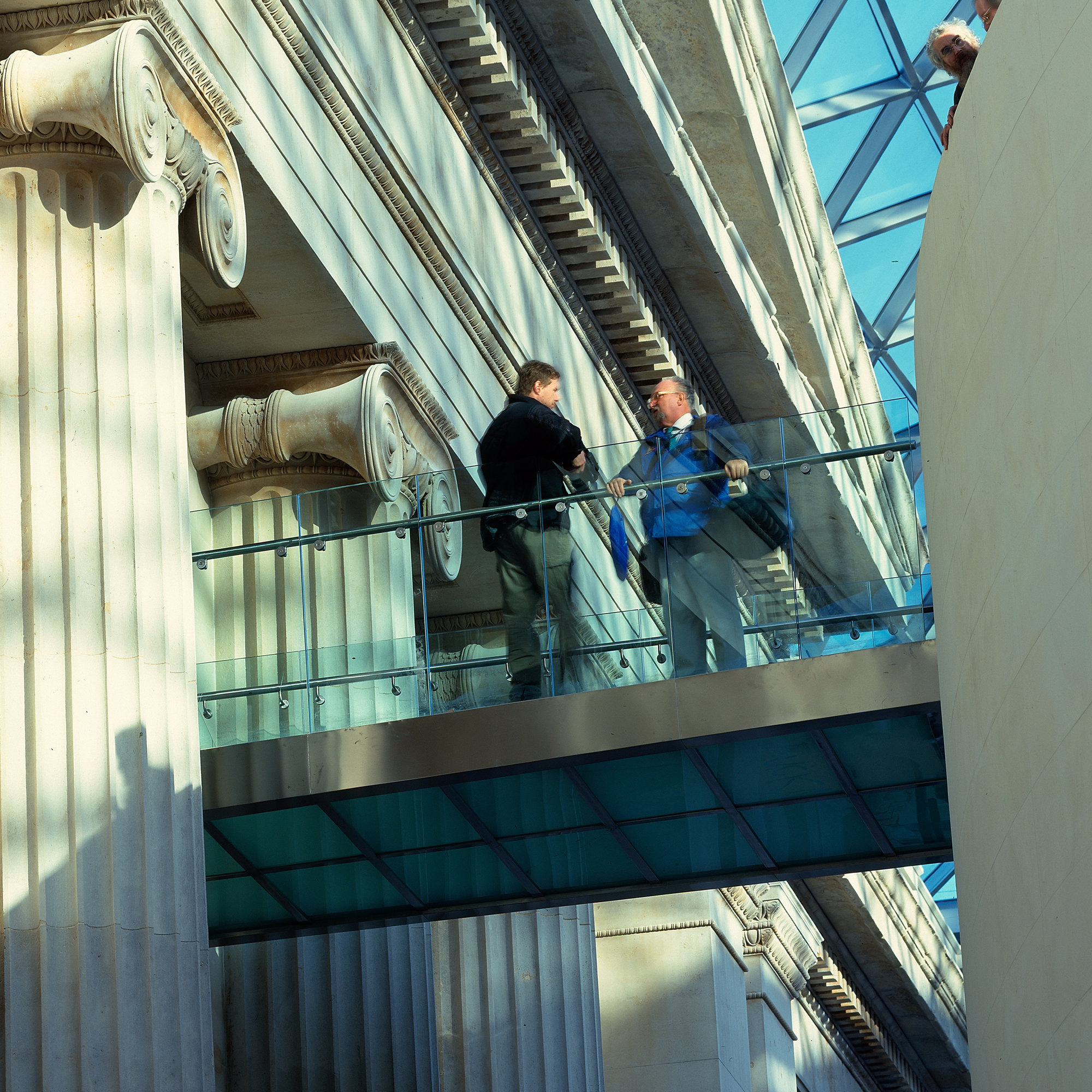 With over six million visitors annually, the British Museum is as popular as the Louvre or the Metropolitan Museum of Art. However, in the absence of a centralised circulation system it was congested and difficult to navigate. The departure of the British Library was the catalyst for removing the bookstacks and recapturing the courtyard as a new public focus. The Great Court is entered from the Museum’s principal level and connects all the surrounding galleries. Within the space there are information points, a bookshop and café. At its heart is the magnificent volume of the Reading Room, now a major exhibition space, which for the first time in its history is open to all. Broad staircases encircling the Reading Room lead to a temporary exhibitions gallery and a restaurant terrace. Beneath the courtyard are the Sainsbury African Galleries, an education centre and facilities for schoolchildren.