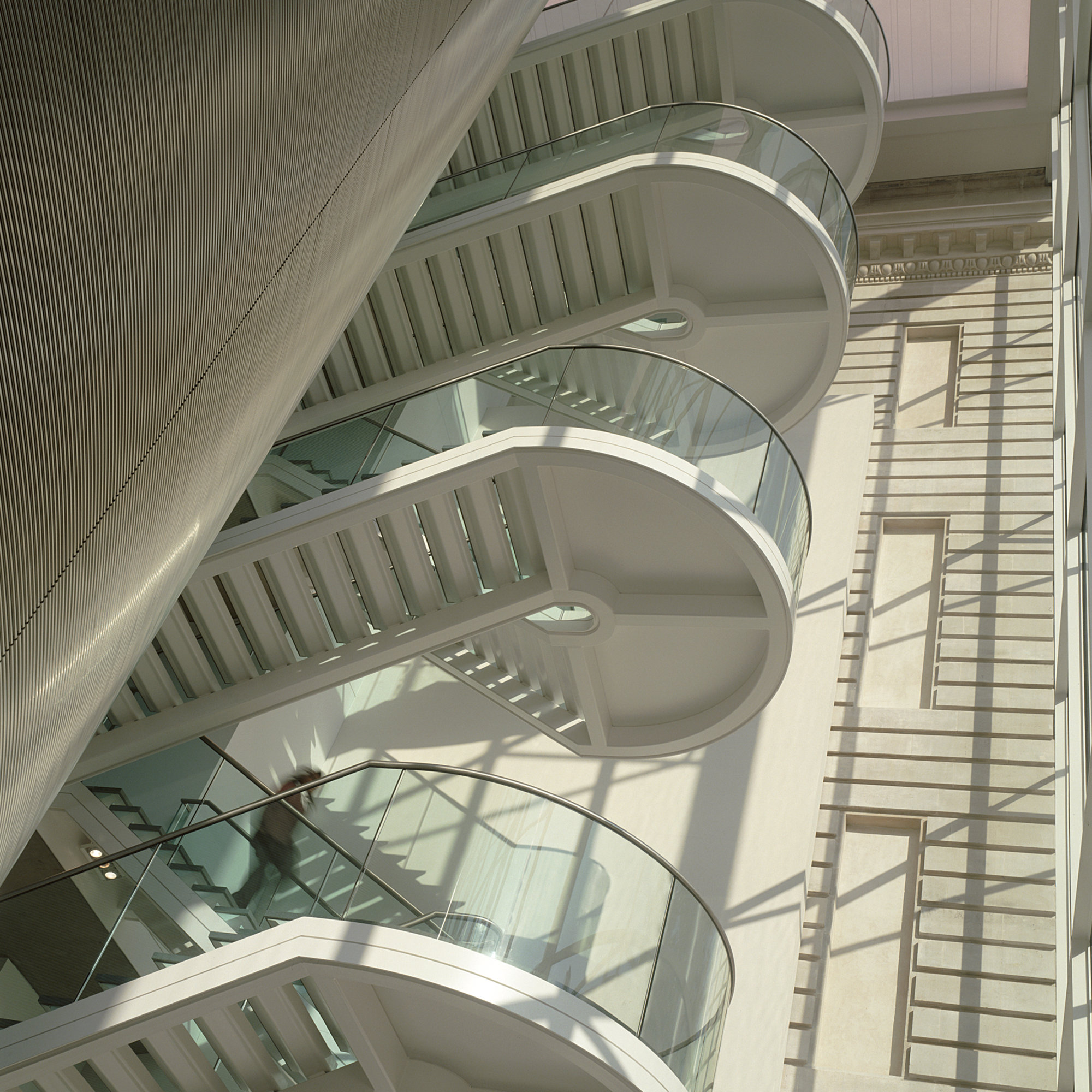 Sitting amongst existing 1960’s institutional buildings and the Grade II listed Royal School of Mines, the Imperial College Business School houses both teaching and research/office space. The School has been divided into two parts, the teaching element is within a purpose built new facility, and the office areas within three refurbished floors of the existing Royal School of Mines.