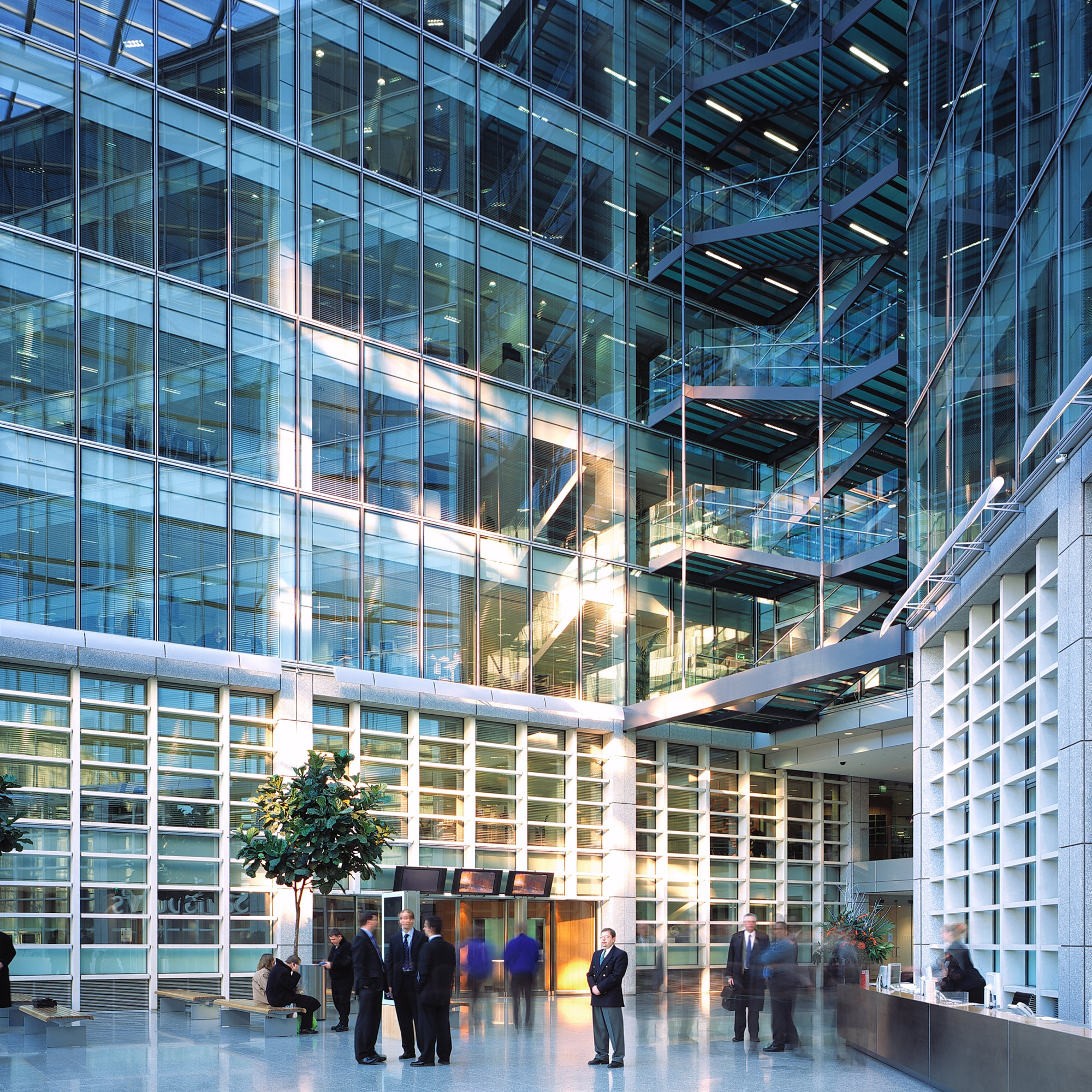 The new building has eight storeys of flexible office accommodation, designed to respond to changing work patterns and new developments in information technology. The office floors look into a full-height glazed atrium, which opens out onto Holborn Circus through a dramatic curved glass facade, allowing views deep into the heart of the building. Within the atrium, which is to be animated by a site-specific sculpture, is a six-storey glass staircase suspended from slender steel rods; weighing 70 tonnes, it is one of the largest glass stairs ever made.