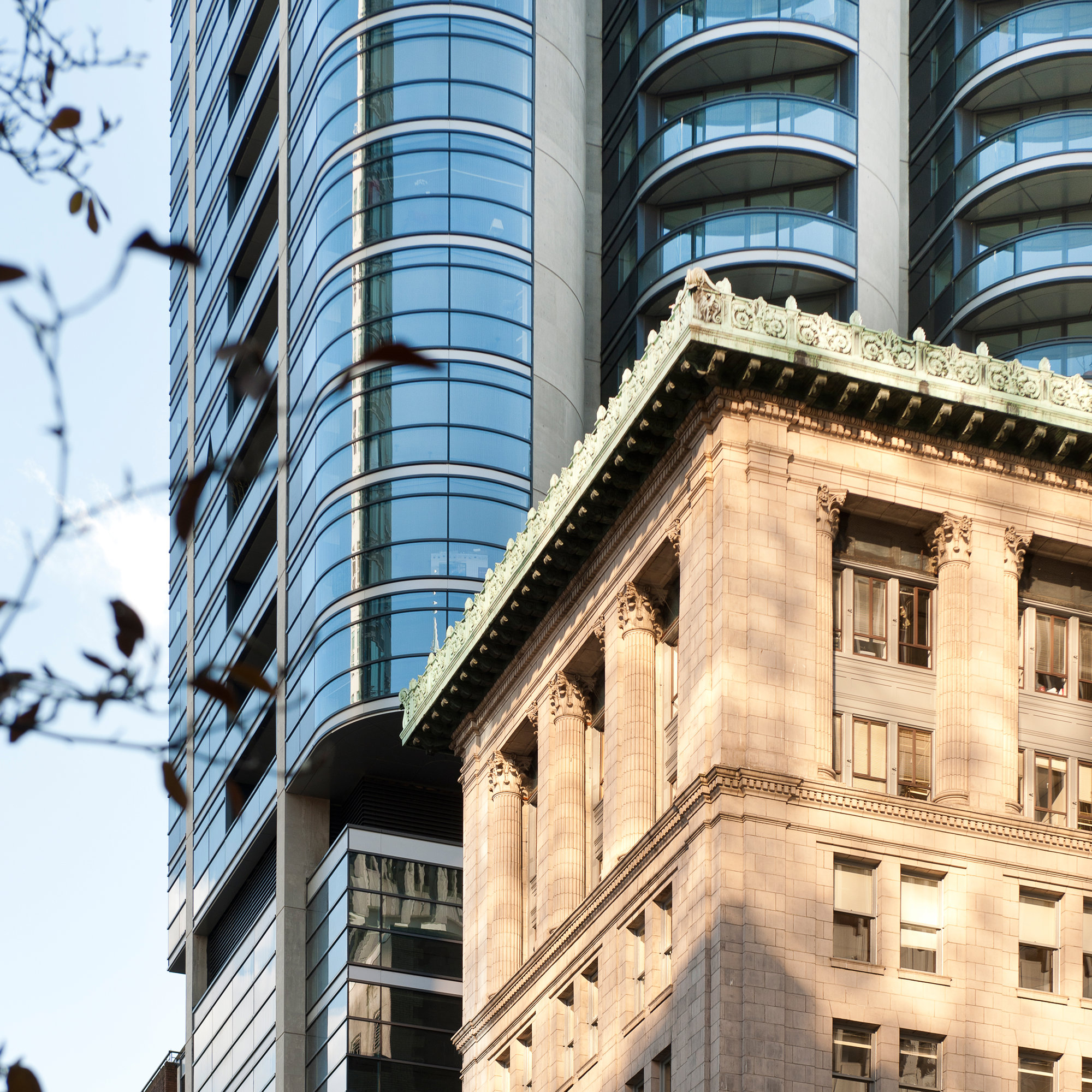 Rising above two retained Art-Deco buildings, Jameson House is located in the heart of Vancouver's heritage district. This retrofit scheme continues the practice's investigation into contemporary interventions within historic structures, explored previously in a high-rise context with the Hearst Tower in New York. The project is also significant in combining living, working and shopping in one location, encouraging sustainable patterns of urban living and balancing energy consumption with its mix of daytime and night-time uses.