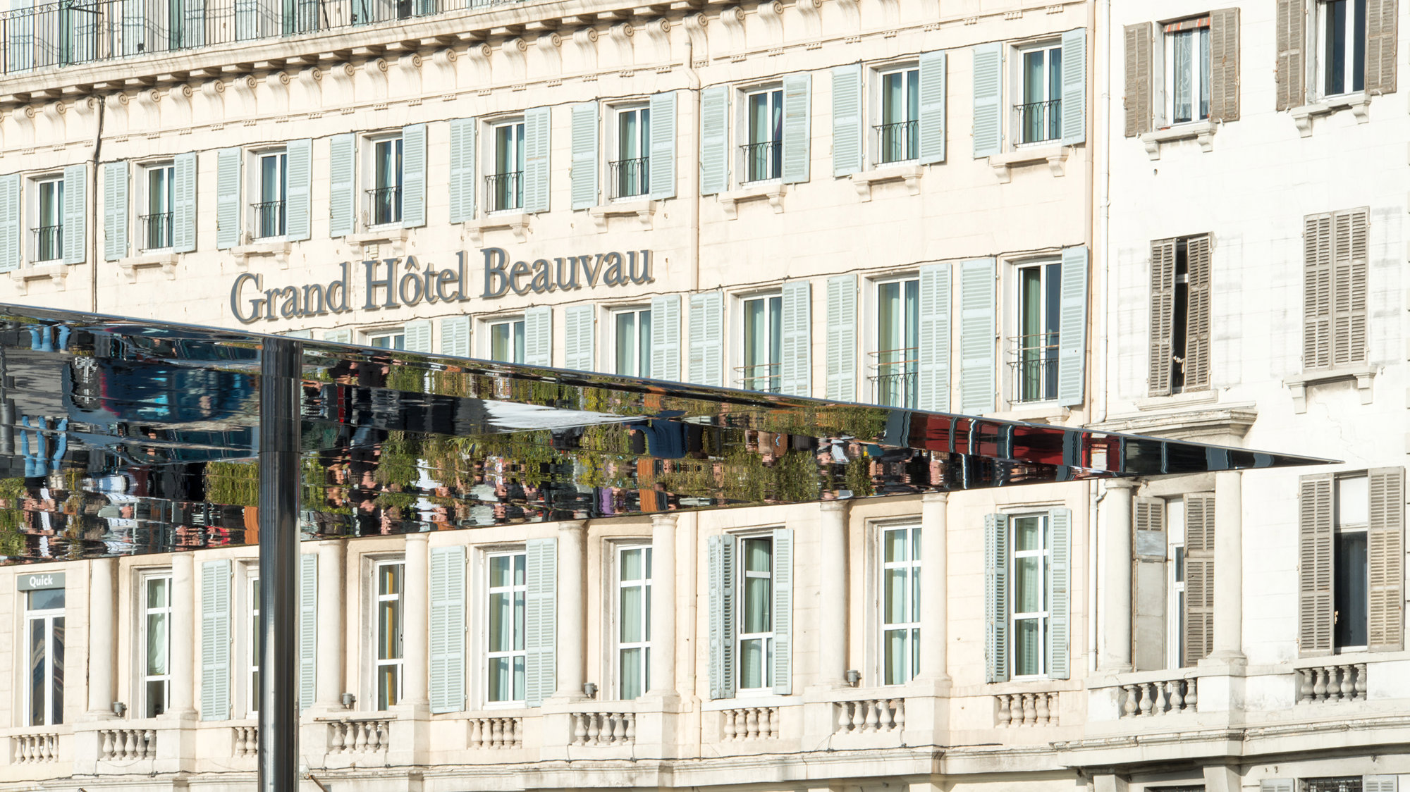 Using very simple means, the space is enhanced with small, discreet pavilions for events, markets and special occasions. At Quai des Belges, the prominent eastern edge of the harbour, a dramatic blade of reflective stainless steel shelters a flexible new events pavilion. Open on all sides, its 46 by 22 metre canopy is supported by slender pillars – the canopy’s polished, mirrored surface reflects the surrounding port and tapers towards the edges, minimising its profile and reducing the structure’s visual impact.