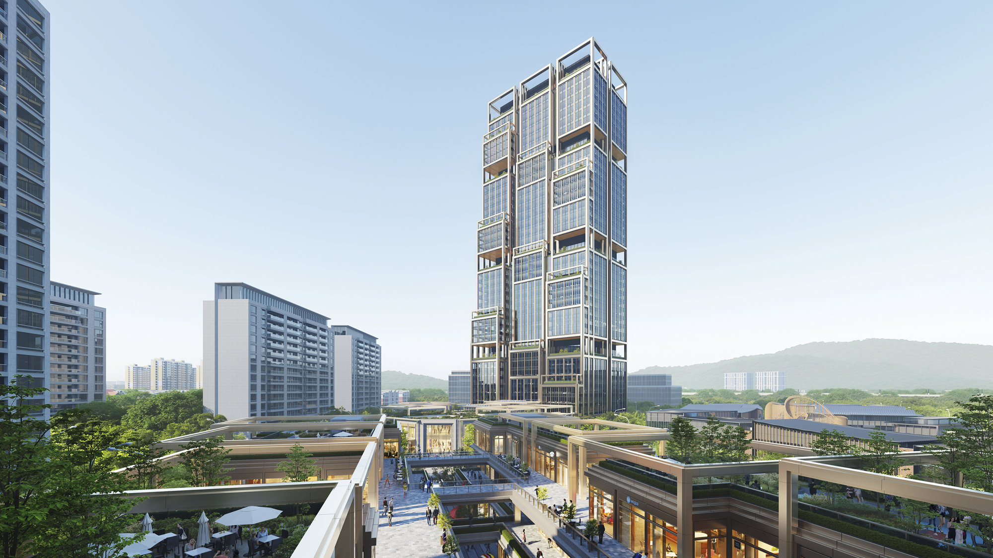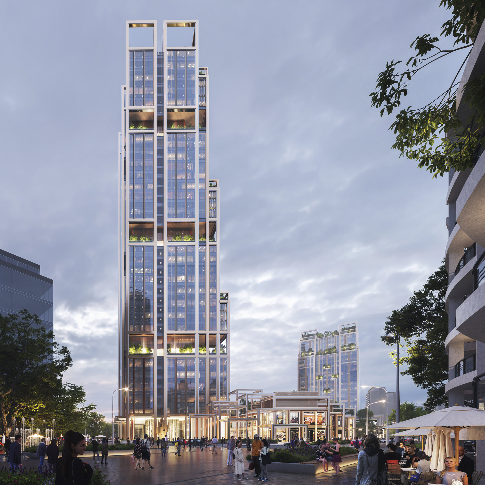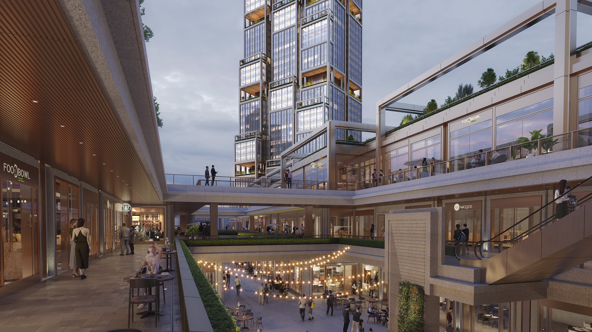 The apartment tower is arranged around a large open-air atrium, which spans the height of the building. The podiums are terraced over three levels and provide street retail and mall shopping experiences. Strong public realm connections are combined with public plazas, raised walkways and green roof gardens to create enriched community facilities and a relaxed social atmosphere for both residents and the public.