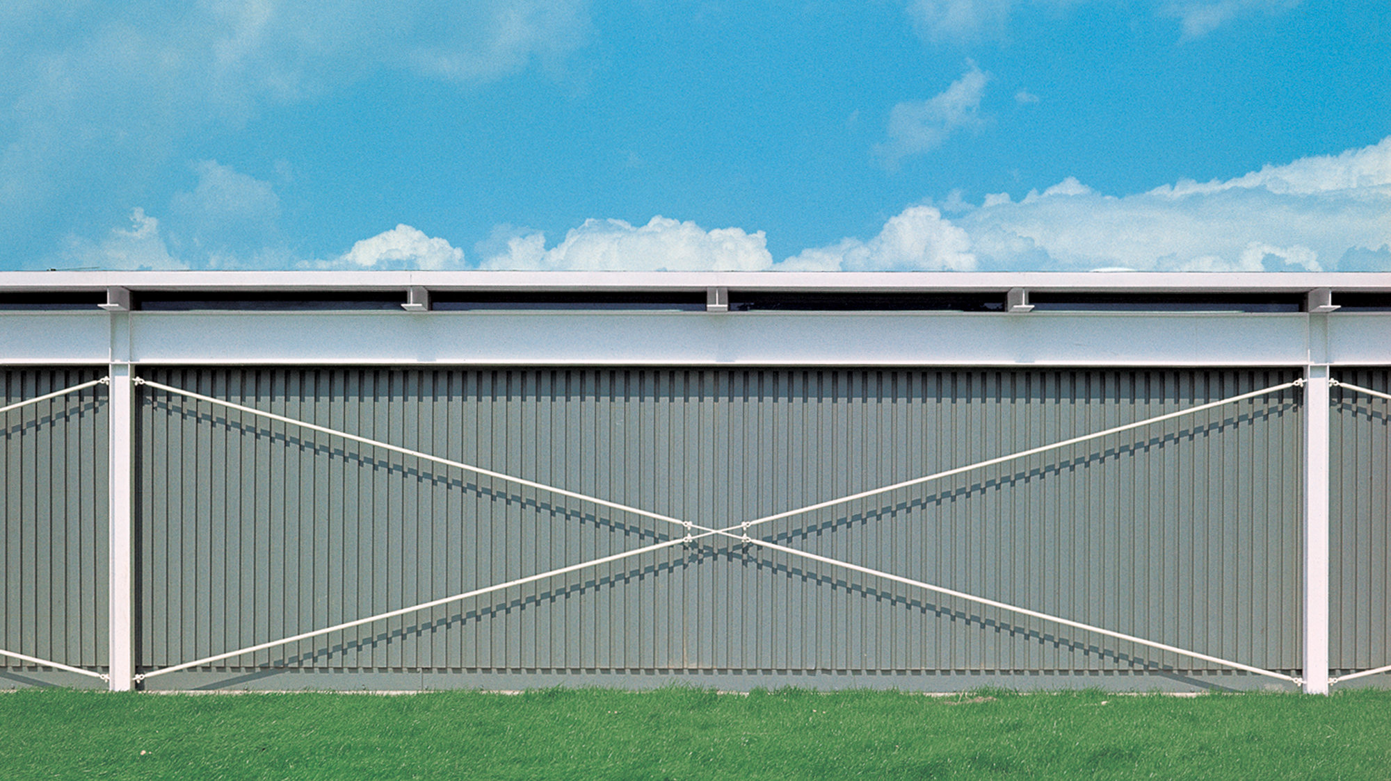 The building's emphasis on prefabricated metal components allowed the structure to be built in less than a year at very low cost. The structural steelwork was celebrated both inside and out, indeed the structural members were painted white to contrast with the grey, plastic-coated, corrugated-steel cladding.