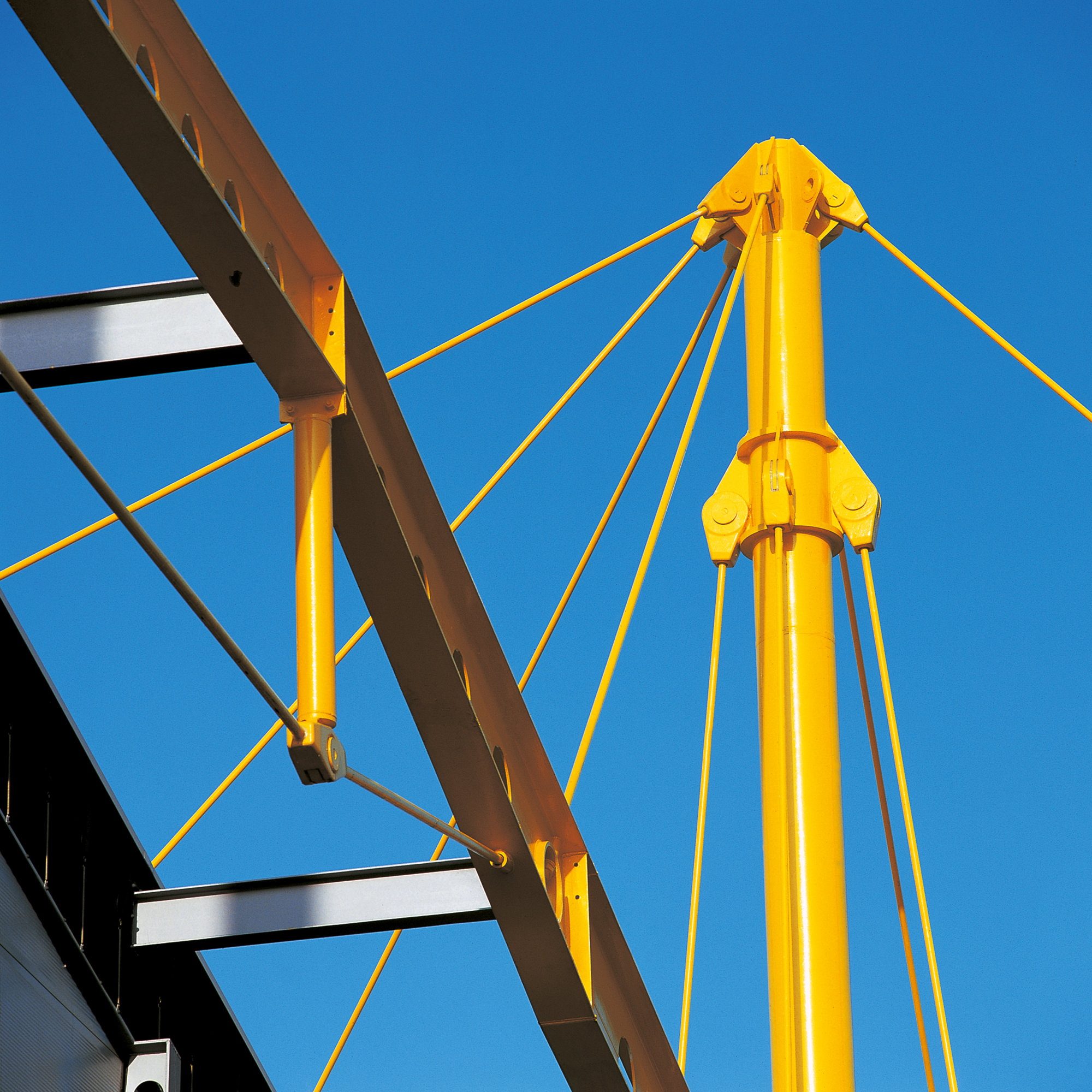 As much as its internal spaces, however, it is the buildings almost festive Renault-yellow skeleton that gives the Centre such an identifiable character. Significantly, this created such a memorable image that the building, alone among the companys facilities, did not need to carry the Renault logo. In fact it is so closely associated with the brand that for many years Renault used it as a backdrop in its advertising campaigns.