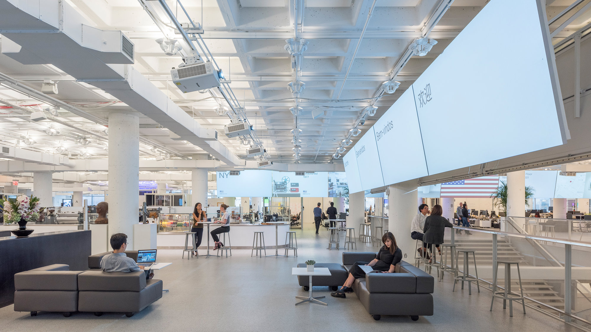 The headquarters for the digital Agency R/GA brings together several of their New York offices into a single location. Spread across two loft floors within the new Manhattan West development, the 165,000 square-foot warehouse has been completely refurbished to foster collaboration, with each floor being larger than a football field.