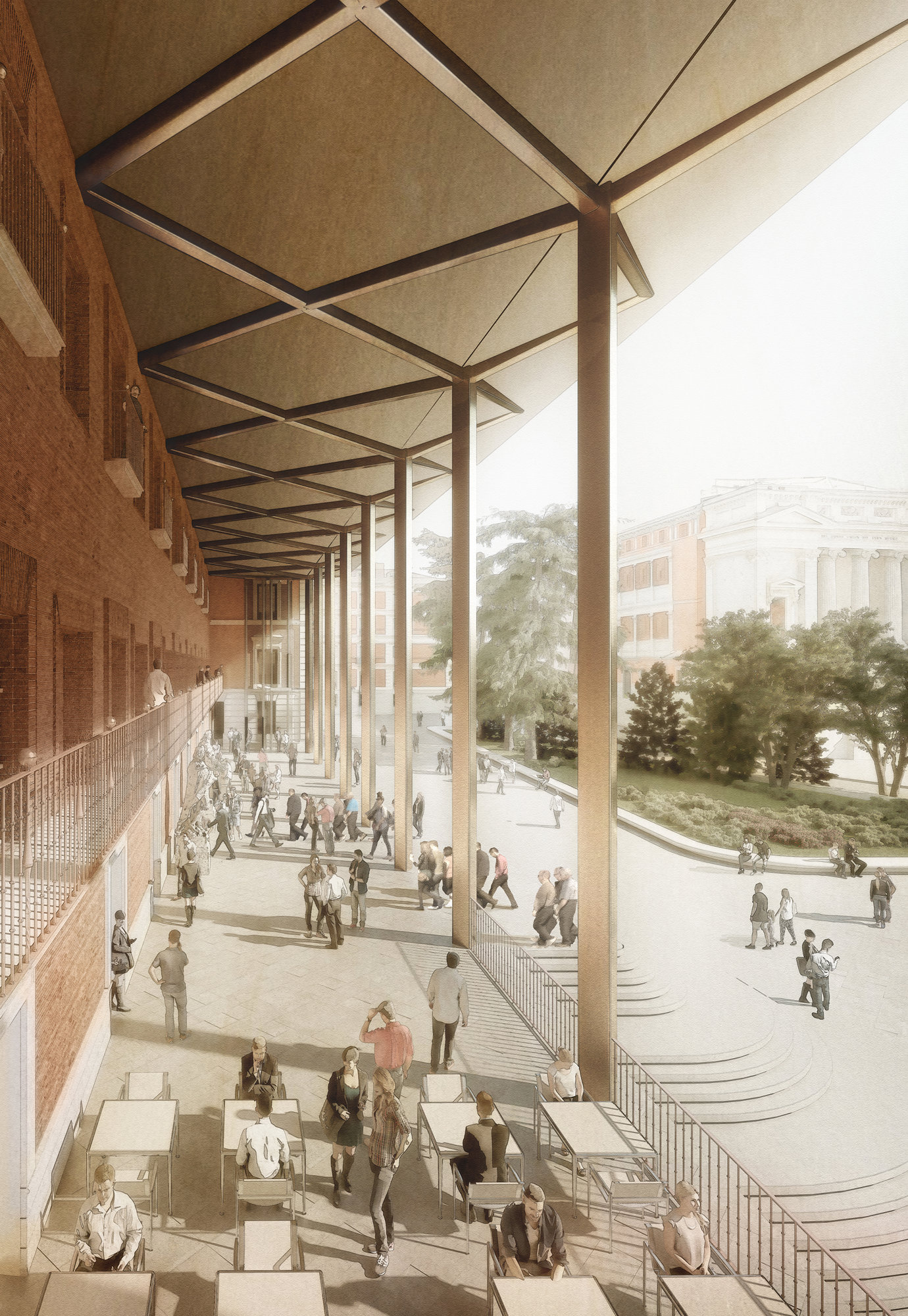 At the heart of the new building will be a public ground floor, with free exhibitions, shop, cafe, and gathering spaces for everyone. This plaza will be liberated by opening up the present-day south façade and removing the existing multiple level changes, allowing ease of movement through the building. Between the original 17th century façade and the present day envelope – a space that encapsulates the story of the building –the floor slabs will be removed to reveal the full extent of the facades, creating a spectacular new indoor public space for special events, gatherings and dinners. This could also become an extension of the city flowing in and embracing the Prado as a public loggia