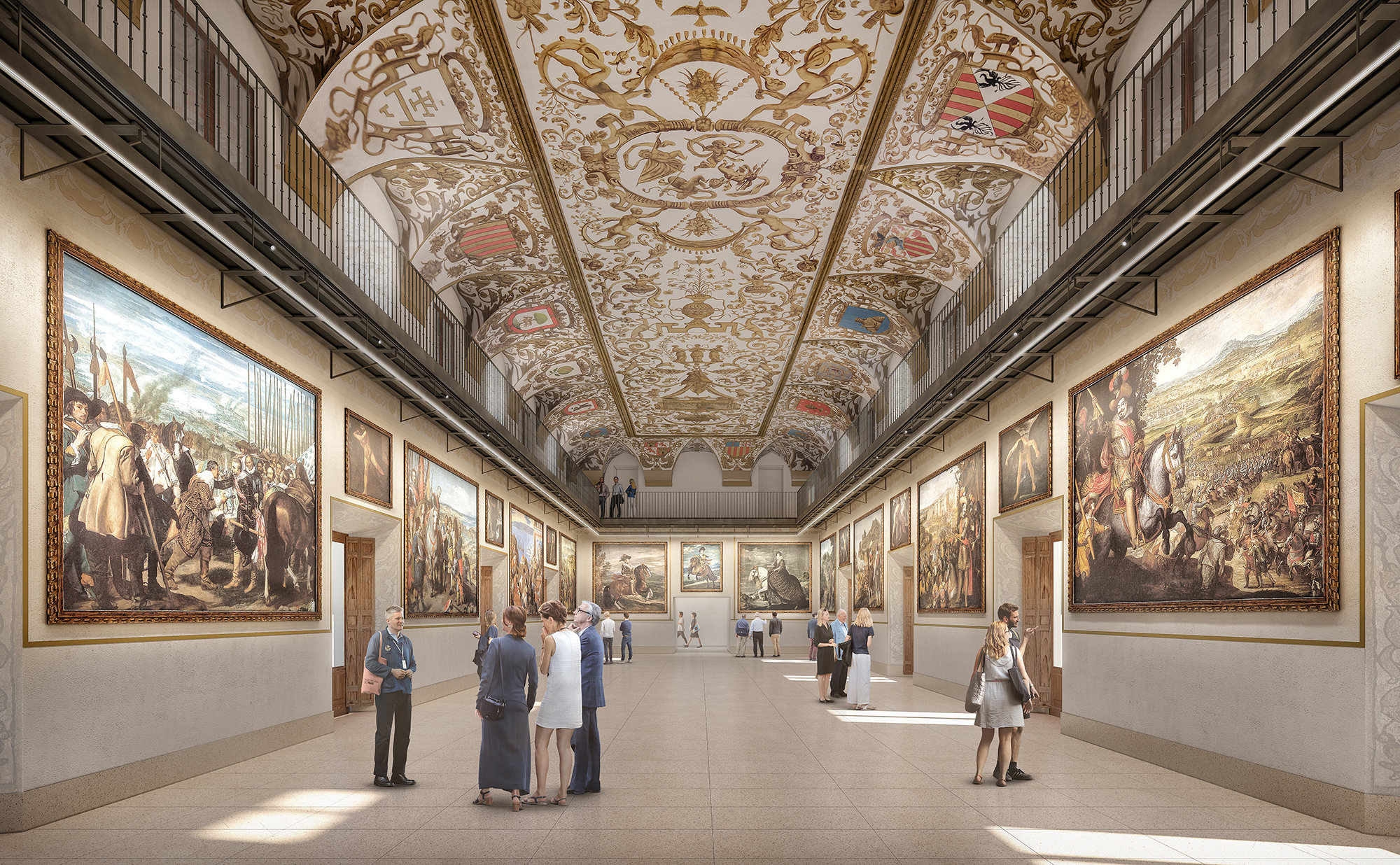 The Hall of Realms (Salón de Reinos) built by Crescenzi and Carbonel in the 1630’s is a noble structure and one of the very few that have survived from the former Palacio del Buen Retiro of the seventeenth century, it predates the Museum which was conceived in 1819. However, it has been the subject of changes and expansion, gathering many layers of history over the centuries. Two centuries after its construction the transformation and expansion of this historic hall will add significant new galleries and related public spaces to the Prado.