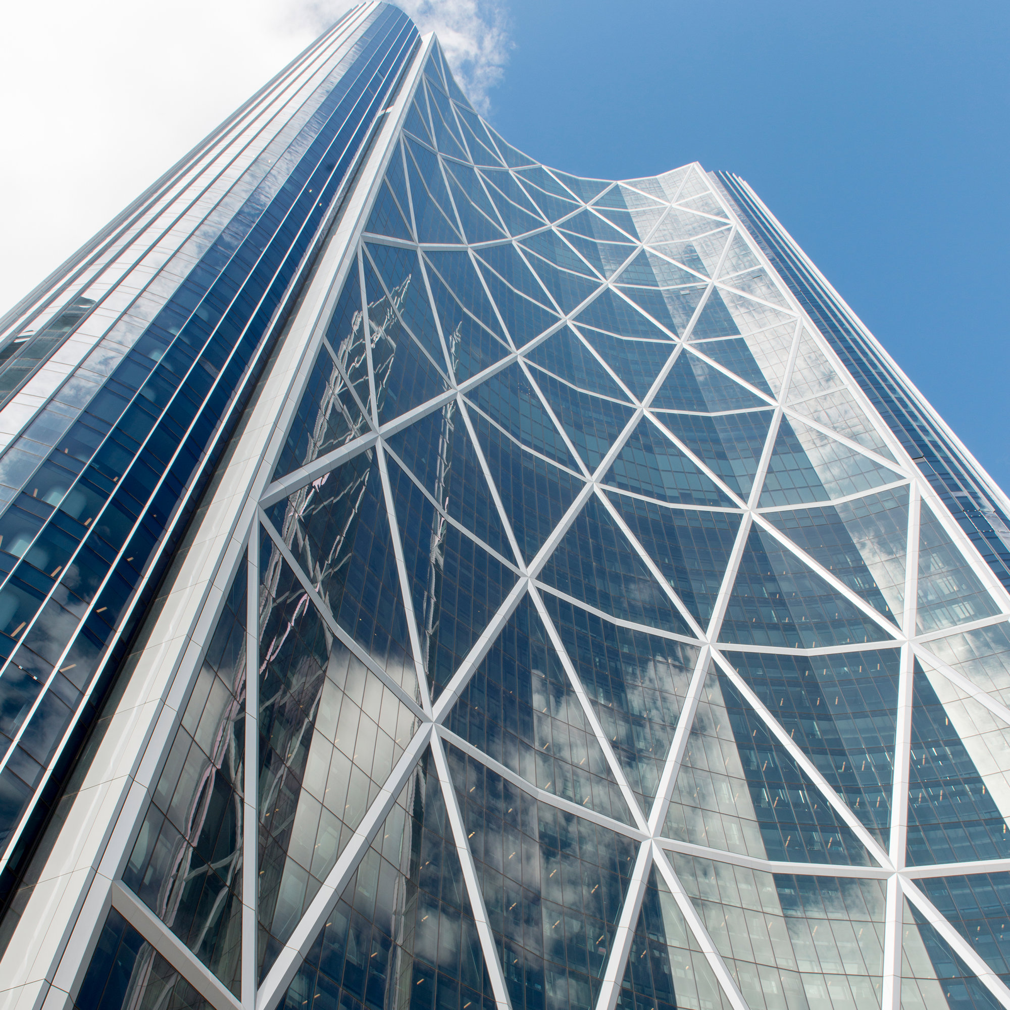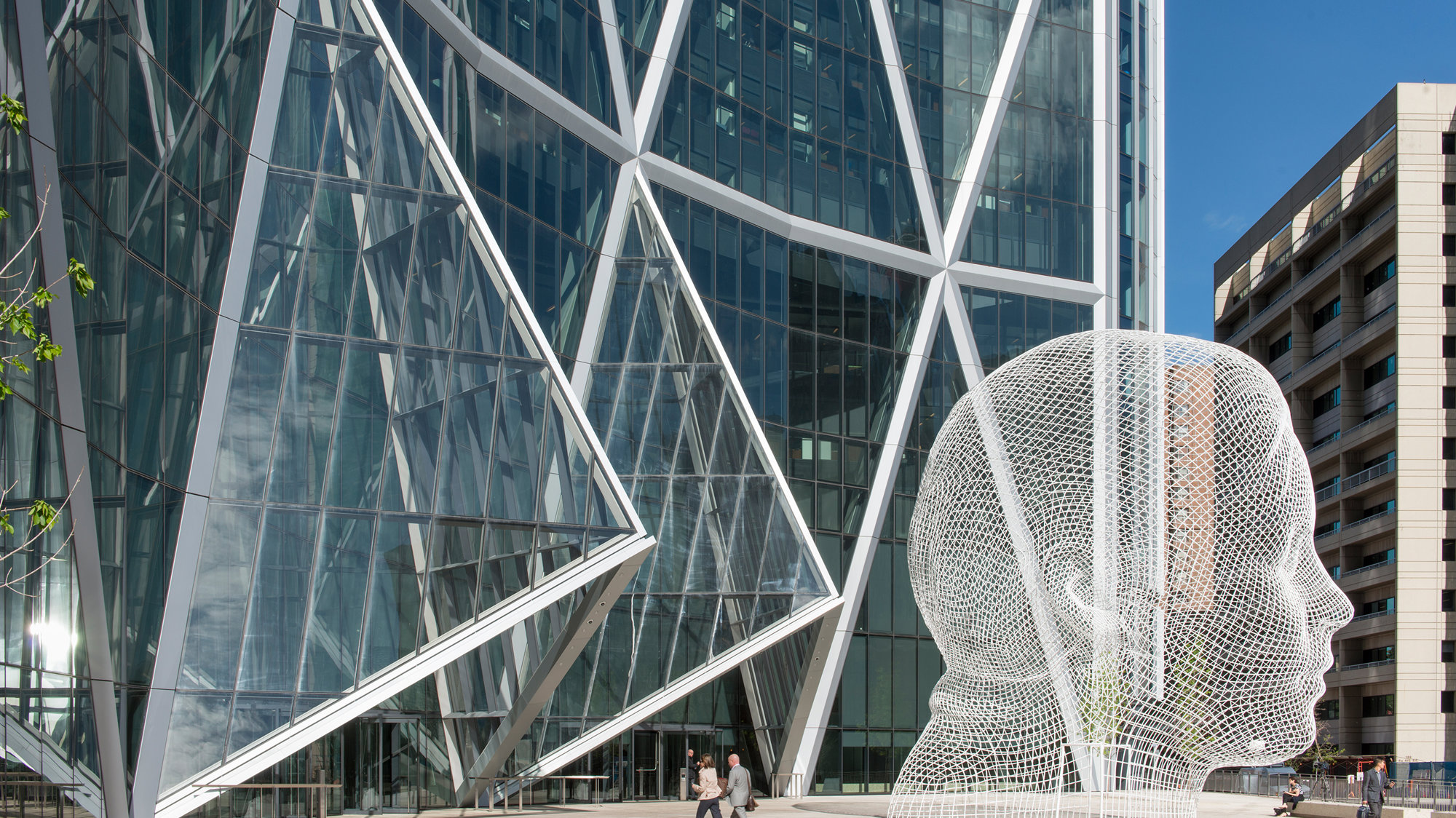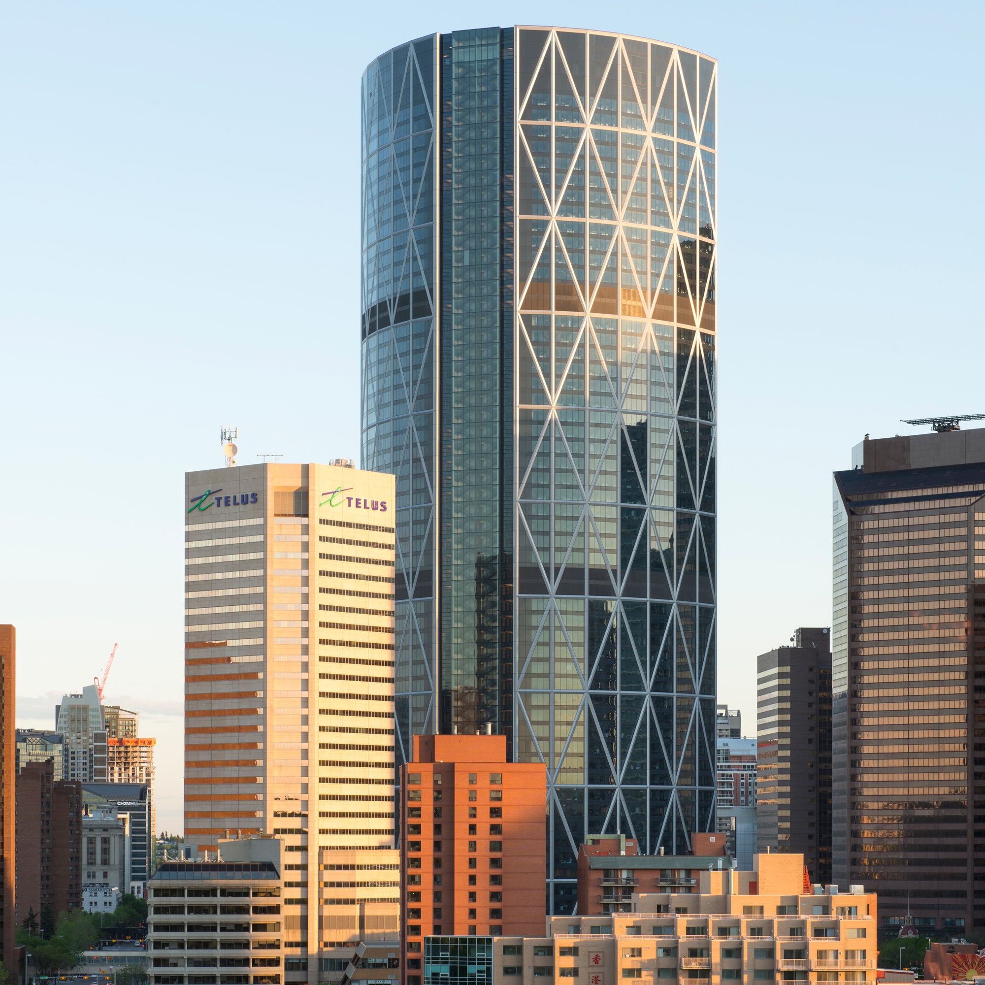 The Bow is the first phase of a mixed-use masterplan for the regeneration of two entire city blocks on the east side of Centre Street, a major axis through downtown Calgary. Providing a headquarters for a major energy company, its form was shaped by both environmental and organisational analysis. The tower faces south, curving towards the sun to take advantage of daylight and heat, while the resulting bow-shaped plan that gives the tower its name maximises the perimeter for cellular offices with views of the Rocky Mountains.