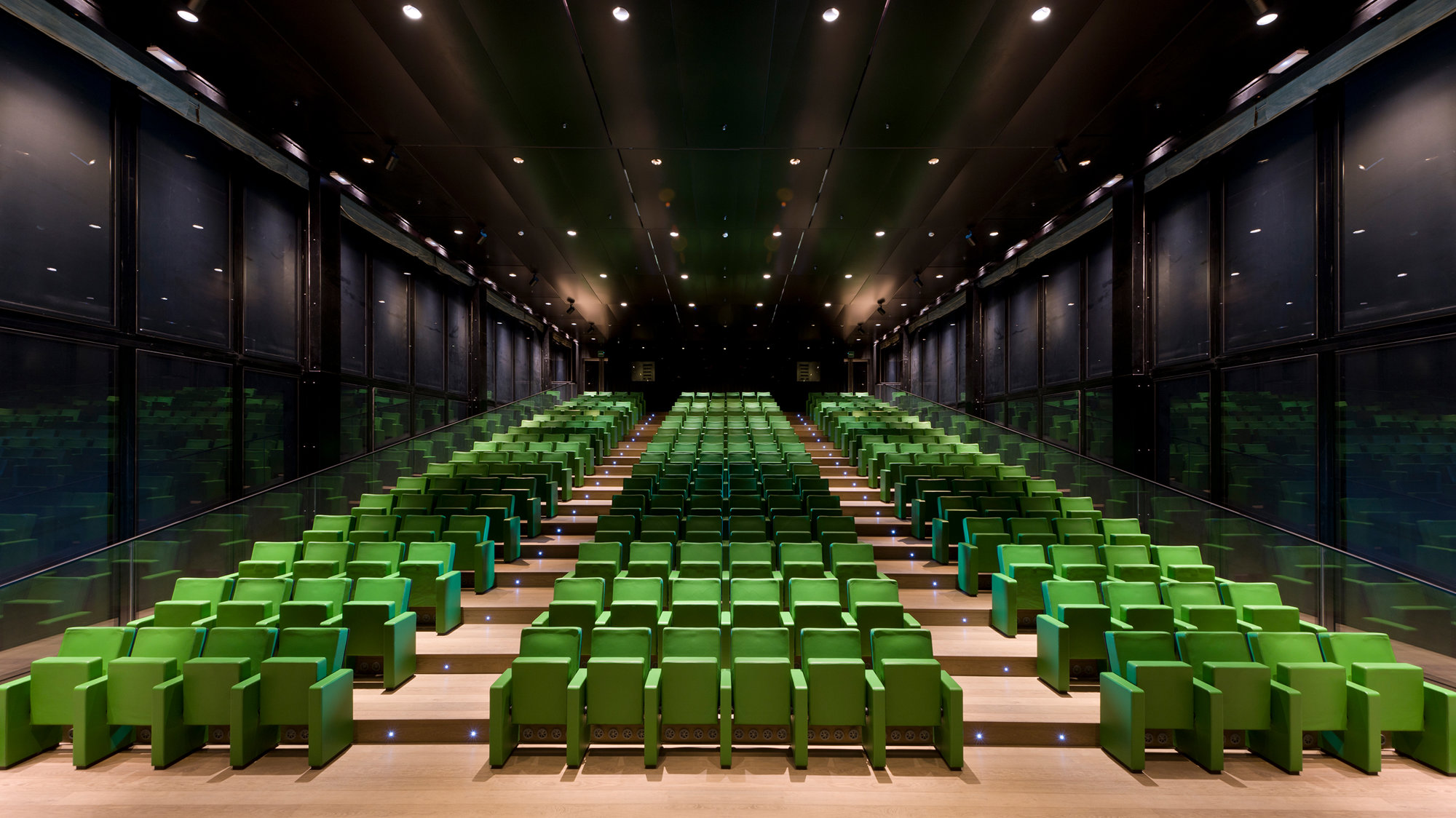 The fifty-five-storey tower is located on the site of the former Real Madrid training grounds, where the Madrid city council assigned sites for four new towers, to be designed by leading international architects. Torre Cepsa is the tallest of this group. It marks a curve in the wide boulevard of the Paseo de la Castellana – the ‘backbone’ of Madrid – and is carefully positioned to maximise the exceptional qualities of its site. Compositionally, the building can be thought of as a tall arch, with the services and circulation cores framing the office floors. At ground level, a 22-metre-high glazed atrium provides the transition from the street, and accommodates a ‘floating’ glass-walled auditorium set into a mezzanine. At the top of the building, the void beneath the uppermost section of the ‘portal’ frame is designed to house wind turbines, which are capable of providing a significant proportion of the building’s power supply.