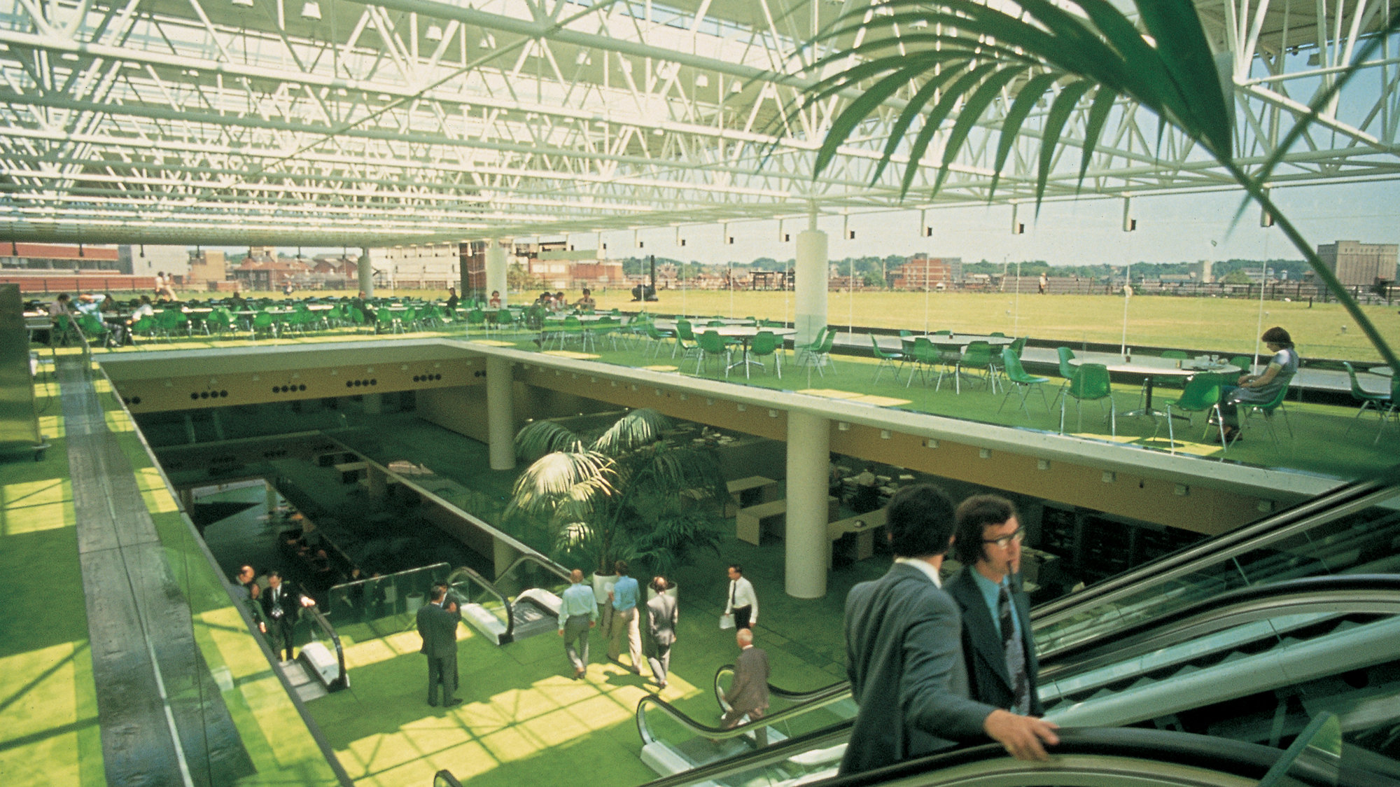 The country headquarters for insurance company Willis Faber & Dumas challenged accepted thinking about the office building while maintaining a sense of continuity within its urban setting. Innovations such as the use of escalators in a three-storey structure, and the social dimension offered by its swimming pool, roof-top restaurant and garden, were all conceived in a spirit of democratising the workplace and encouraging a greater sense of community.
